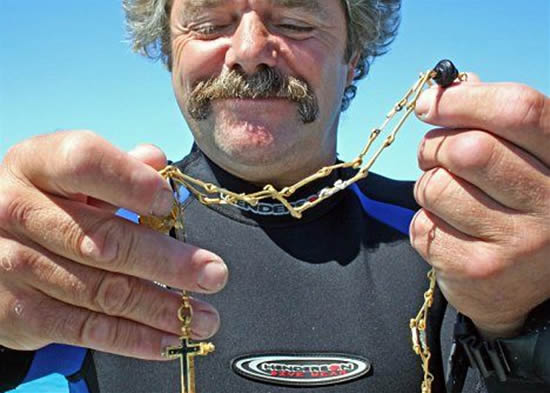 ABD'li bir dalgıç, Florida sahili açıklarında 17'nci yüzyılda tonlarca hazinesiyle batan bir gemiden 250 bin dolar (390 bin TL) değerinde altın kolye çıkardı. "Mel Fisher's Treasures" adlı hazine avcısı şirketinin dalgıcı Bill Burt, eyalete bağlı Florida Keys adalar grubunun açıklarında batan "Nuestra Senora de Atocha" isimli İspanyol gemisi hazinesini ararken, 100 santim uzunluğundaki zinciri buldu.