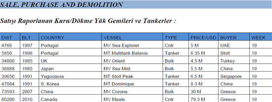 Türkiye Akdeniz kıyısı ise geçtiğimiz hafta başı itibariyle oldukça sessizdi. Bunun en büyük nedeni ise çelik yüklerinde görülen azalmaydı. Geçtiğimiz hafta başı Adriyatik’te ise yeni çelik, hurda, hububat, kereste ve proje yükleri görüldü. Dolayısıyla hafta başı Adriyatik’te navlunların biraz da olsa yukarı çıkmaya başladığı hissedildi. İspanya-Akdeniz tarafında ise doğu Akdeniz, Türkiye, ve batı Afrika destinasyonlu çelik yükleri vardı. Hafta ortasına doğru gelindiğinde, Karadeniz bölgesinde Baltık’dan daha olumlu haberler vardı. Karadeniz bölgesinde yatay seyreden ferro ürünleri, çelik, hububat, gübre ve kömür taşımaları geçtiğimiz hafta artmaya başladı. Ayrıca geçtiğimiz hafta yakıt fiyatlarında da gerileme olunca bağlantı yapmak armatörler için daha kolay oldu. Çarşamda günü, Baltık bölgesinden de yük çıkışı anlamında daha olumlu haberler gelmeye başladı. Bu gelişmelere rağmen coaster piyasasında hala gemi arzı yük talebinden fazla görünüyor. Bu nedenle navlunlarda yukarı yönlü bir hareket gözlenemiyor; sürekli devam eden yatay seyir de armatörlerden ziyade kiracıların pazarlık gücünü artırıyor.