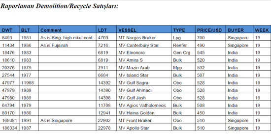 Mevcut piyasa koşulları hala Capesize’lar için navlun artışını desteklemiyor. Geçtiğimiz hafta nispeten Batı Avustralya çıkışlı yüklerdeki hareketten dolayı daha aktif bir hafta oldu ve yakıt fiyattları düştü. Capesize lar için geçtiğimiz hafta tüm ana rotalarda ortalama timecharter rate 775 Usd gerileyerek 6.002 Usd’ye ulaştı; BCI ise toplam 72 puanlık gerilemeyle 1494 puana geriledi. Piyasada geçtiğimiz büyük demir cevheri kiracılarının geri dönüşü ve hakimiyeti vardı, bu bağlamda Mayıs sonu ve Haziran başı için Australya – Çin arası 10/12 Cape bağlantısı yapıldı. Aslında bu yeni yükler piyasa için olumluydu çünkü geçtiğimiz hafta Çin kömür ithalatı yapmadı.
