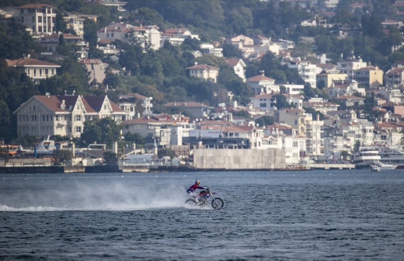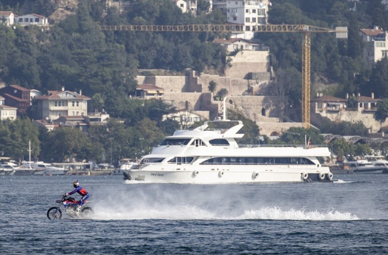 Dünyaca ünlü motokros yarışçısı Robbie Maddison, kendi tasarladığı motosikletiyle İstanbul Boğazı'nı su üzerinde geçerek bir ilke imza attı.