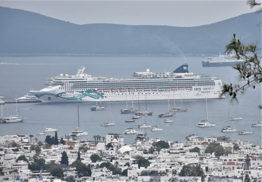 Muğla'nın Bodrum ilçesine, Bahamalar bayraklı iki kruvaziyerle 2 bin 528 yolcu geldi. Rodos'tan yola çıkan 294 metrelik "Norwegian Jade" (fotoğrafta) isimli gemi, Bodrum Yolcu Limanı iskelesine yanaştırıldı. Gemide çoğunluğu Kanadalı ve İngiliz toplam 2 bin 430 yolcu ile 1021 personel bulunduğu bildirildi.