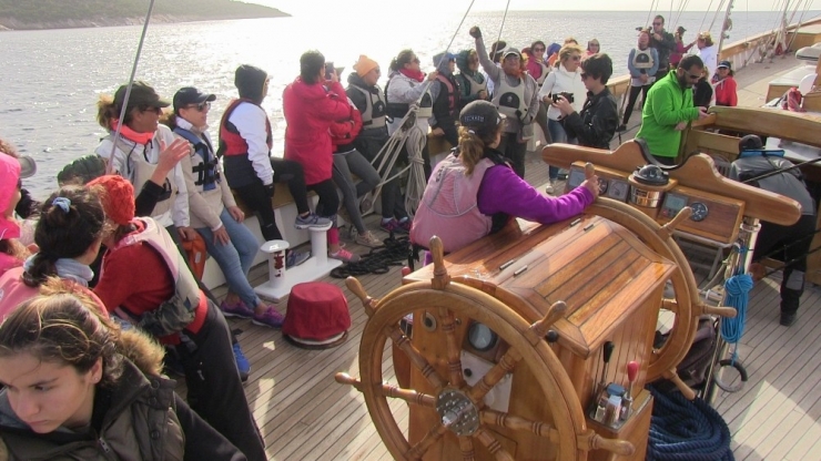 Bodrum'un Yelkenli Okul Gemisi STS'de düzenlenen etkinlikte kadınlar yelken açma, tekne kullanma ve bağlama konularında uygulamalı bilgi aldı. Bodrum açıklarında gerçekleştirilen ve 41 kadının katıldığı eğitimlerde, kadınlar keyifli anlar yaşadı.