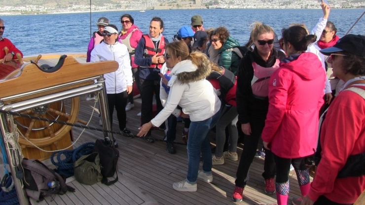 Bodrum’da yaşayan ev kadınları, yelkenli tekne ile denize açılıp mavi sulara yelken açtı. Hayatlarında ilk kez yelkenli tekne kullanan hanımlar keyifli bir gün geçirdi.