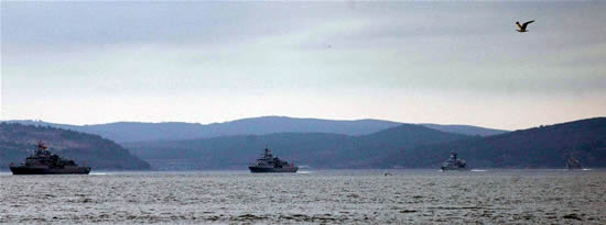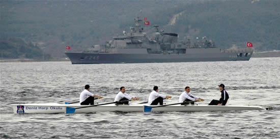 Deniz Kuvvetleri Komutanlığı'na ait askeri gemiler, Çanakkale Boğazı'ndaki geçit töreniyle vatandaşlar ve protokol mensuplarını selamladı.