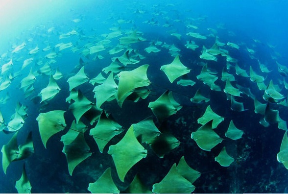 Binlerce altın vatozun okyanus yüzeyine yakın, sessiz ve büyüleyici yolculukları bot yolculuğu yapan amatör bir fotoğrafçı tarafından görüntülendi.