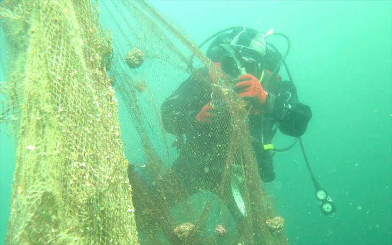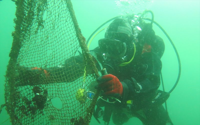 Çanakkale Boğazı ve adalar çevresinden 18 bin metrekare hayalet ağ ile ahtapot avcılığında kullanılan 10 kilometre uzunluğunda av malzemesi temizlendi.