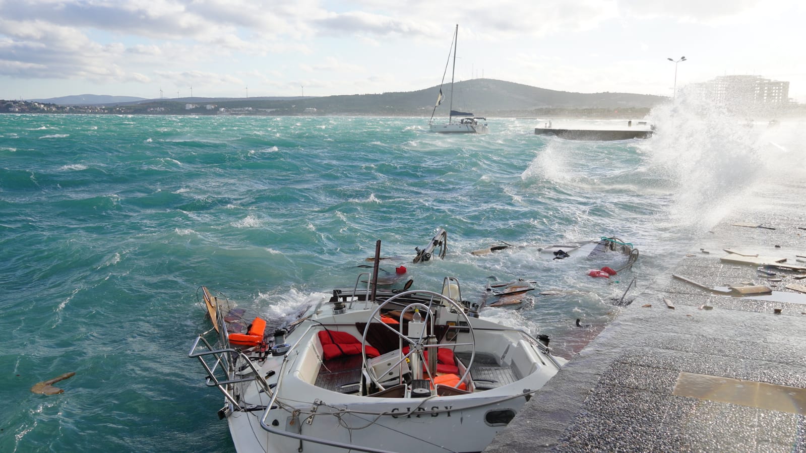 Poyraz fırtınası nedeniyle Çeşme Yıldızburnu'nda, bağlı oldukları halatlardan kurtulan bir yelkenli, kayalara çarparak parçalandı ve battı, bir motoryat alabora oldu.