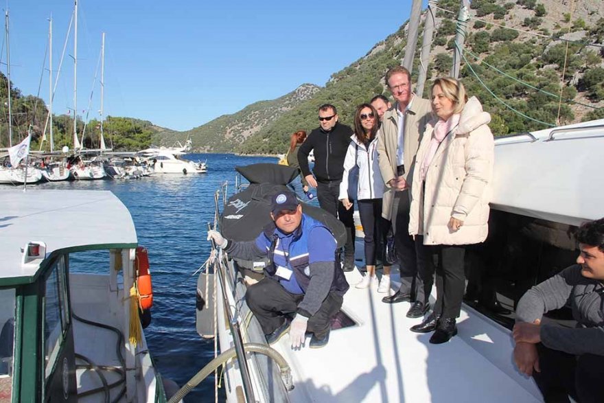 Muğla Büyükşehir Belediyesi Çevre Koruma ve Kontrol Dairesi Başkanı Aylin Giray ise, " Bin 480 km uzunluğundaki kıyı şeridimizi korumak için deniz araçlarından kaynaklı atıkları topluyoruz. Göcek Atık Kabul Tesisi ve Ula- Akyaka Maden İskelesi Atık Kabul Tesislerimize 8 atık kabul teknesi ve 2 görev devriye botuyla atıkları ulaştırıyoruz. Göcek- Dalaman koylarında sezonda 2 bin tekneye hizmet vererek çöp ve atıkların denize ulaşmaması için elimizden geleni yapıyoruz” dedi.