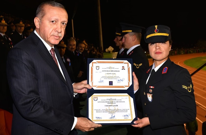 Dönem birincisi J. Asb. Çvş. Yasemin Mersin Çelik'in konuşmasının ardından Cumhurbaşkanı Recep Tayip Erdoğan tarafından dereceye giren mezunlara diplomaları taktim edildi.