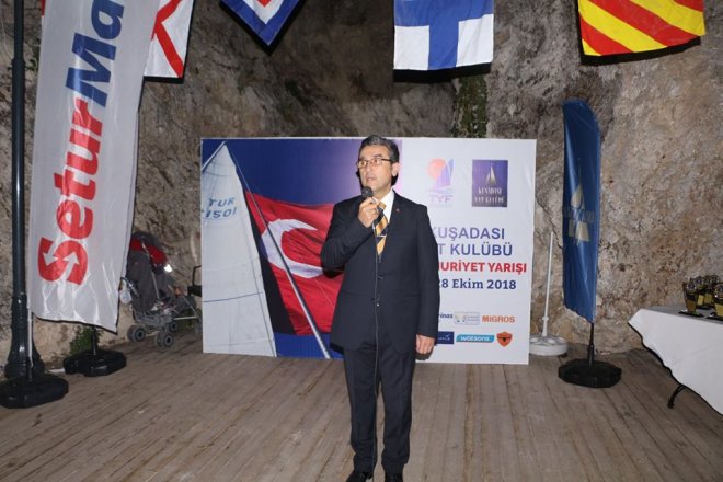 Törende konuşan Kuşadası Belediye Başkanı Özer Kayalı, Türkiye gibi üç tarafı denizlerle çevrili bir ülkede denizciliğe verilen önemin yeterli olmadığı gerçeğinden hareket ederek Kuşadası Belediyesi olarak denizcilere ve denizciliğe destek vermeye devam edeceklerini ifade etti. Kayalı, "Cumhuriyetin kuruluşunun 95'inci yıl dönümü coşkusunu yaşadığımız böyle güzel bir günde altıncısı düzenlenen Cumhuriyet Kupası’na verdikleri destek için başta organizasyonu düzenleyen tüm katılımcılara ve destekçilere teşekkür ederim. Organizasyonun her sene biraz daha büyüyerek tekrarlanmasın diliyorum” dedi.
