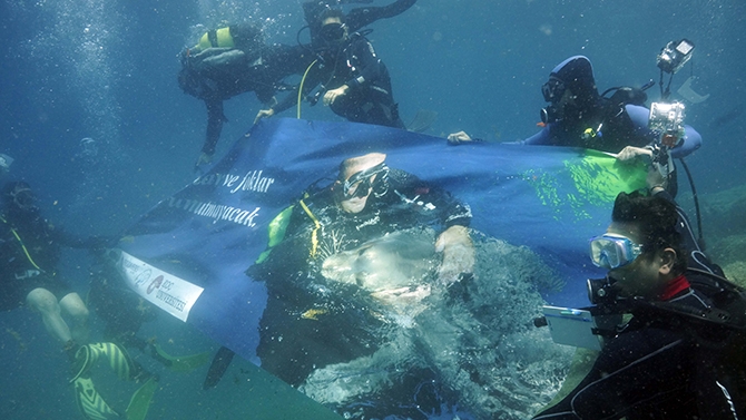 Dalgıçlar ve foklar Mustafa Koç’u unutmadı