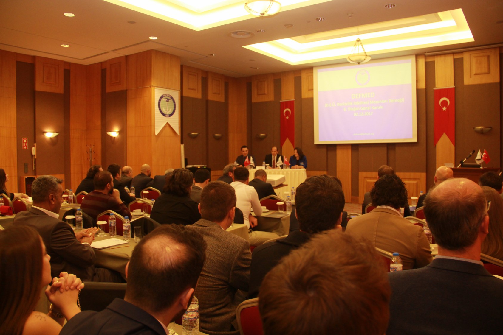 DEFMED’in olağan genel kuruluna dernek üyeleri iştirak etti. Önceki Yönetim Kurulu Başkanı Osman Bilgin’in açılış konuşmasıyla başlayan genel kurulda Kenan Yalavaç Divan Kurulu Başkanlığına, Didem Özer Çaylan ve Ender Mert Eyigün de Divan Kurulu Üyeliğine seçildi. Bilgin, konuşmada yönetim kuruluna teşekkür ederek başkanlığını yaptığı iki dönemdeki faaliyetler hakkında bir sunum gerçekleştirdi. Tüm üyelere tek tek teşekkürlerini ileten Bilgin, Derneğin daha iyi yerlere gelmesi için çalışmaya devam edeceğini de sözlerine ekledi.