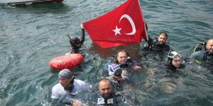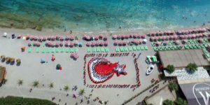 TATİLCİLERDEN DEV TÜRK BAYRAKLI KUTLAMA