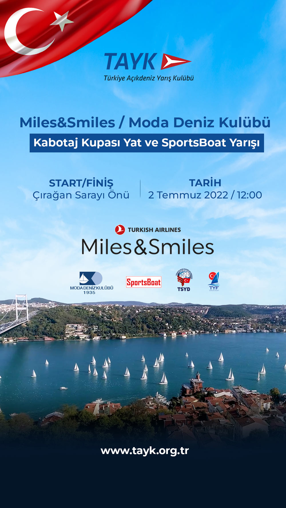 Denizcilik ve Kabotaj Bayramı’mız bir yelken şöleni ile boğazda kutlanacak ve “Miles&Smiles / Moda Deniz Kulübü Kabotaj Kupası Yat ve SportsBoat Yarışı” adıyla gerçekleşecek yarış, IRC 0-1-2-3-4, Destek ve SportsBoat sınıflarına açık olacak ve yarışın startı 02 Temmuz Cumartesi günü 5 dk uyarısı ile saat 12:00’da Çırağan Sarayı önünden verilecek.