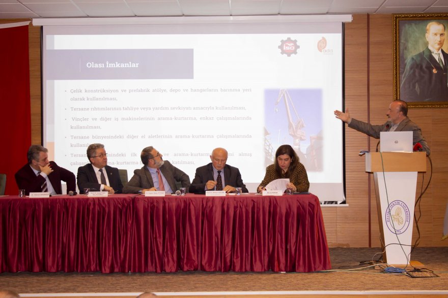Çalıştayın birinci oturumunda sunum yapan İstanbul Üniversitesi Cerrahpaşa Mühendislik Fakültesi Jeoloji Mühendisliği Bölüm Başkanı Prof. Dr. Hüseyin Öztürk, İTÜ Afet Yönetimi Enstitüsü’nden Dr. Hikmet İskender, Piri Reis Üniversitesi Mühendislik Fakültesi Dekanı Prof. Dr. İsmail Hakkı Helvacıoğlu, Ada Tersanesi Başkanı Adil Erkoç ve GİSBİR Genel Sekreteri Mehtap Özdemir tarafından; "İstanbul’un olası depremi ve Marmara’da mevcut durumu, İstanbul Depremi ve Afet Yönetimini, Tuzla tersanelerinin depreme dayanıklı hale getirilmesi için gerekli yatırımları ile Tersanelerde depreme hazırlık ve deprem sonrası için tersane imkanları" konuları değerlendirildi.