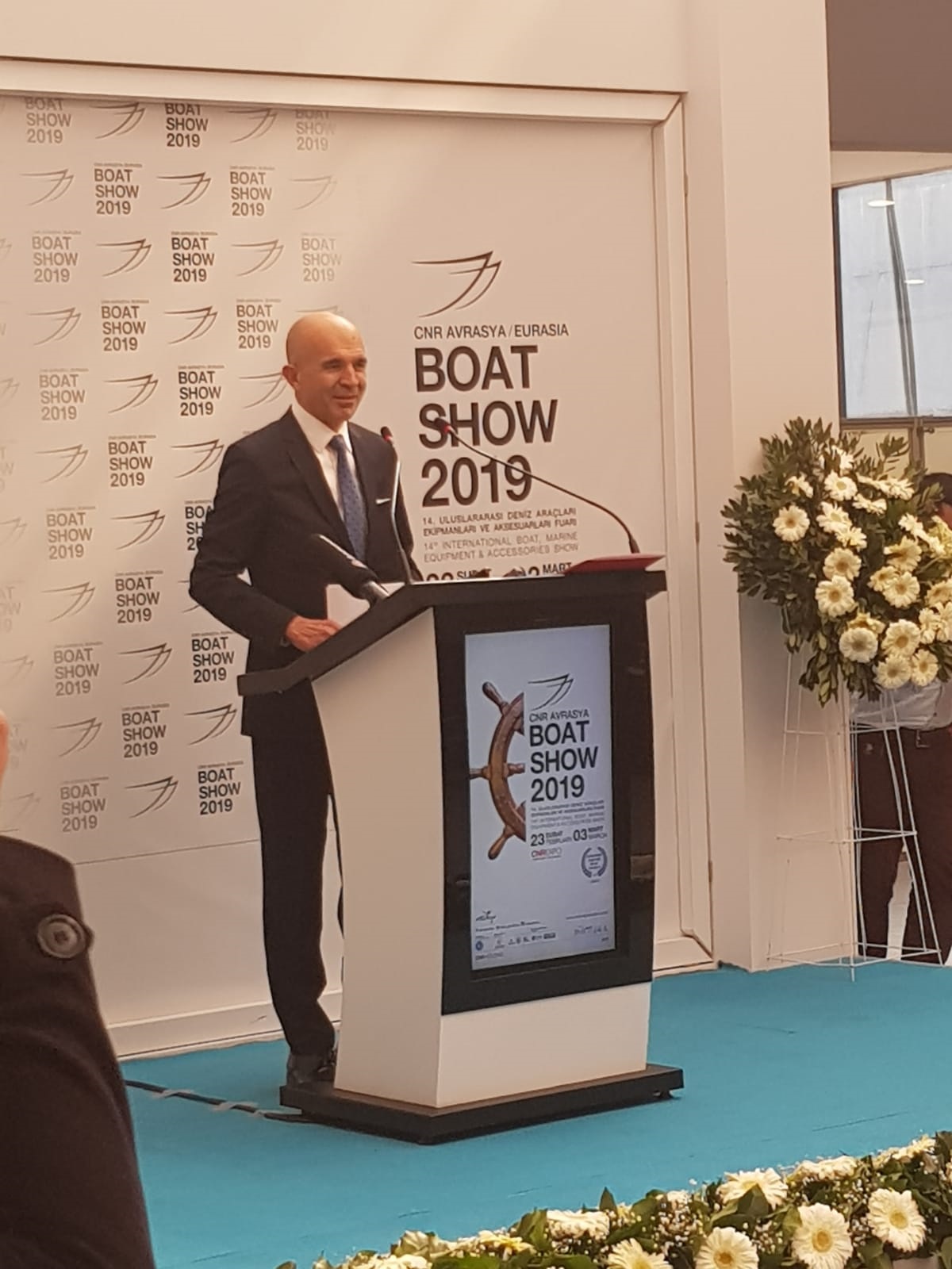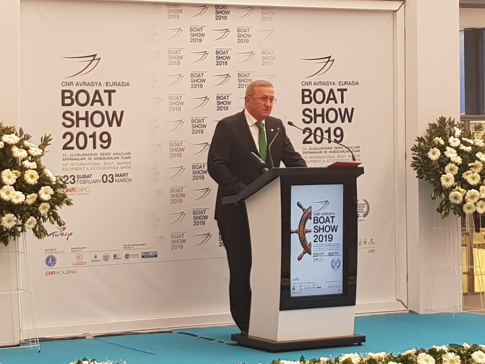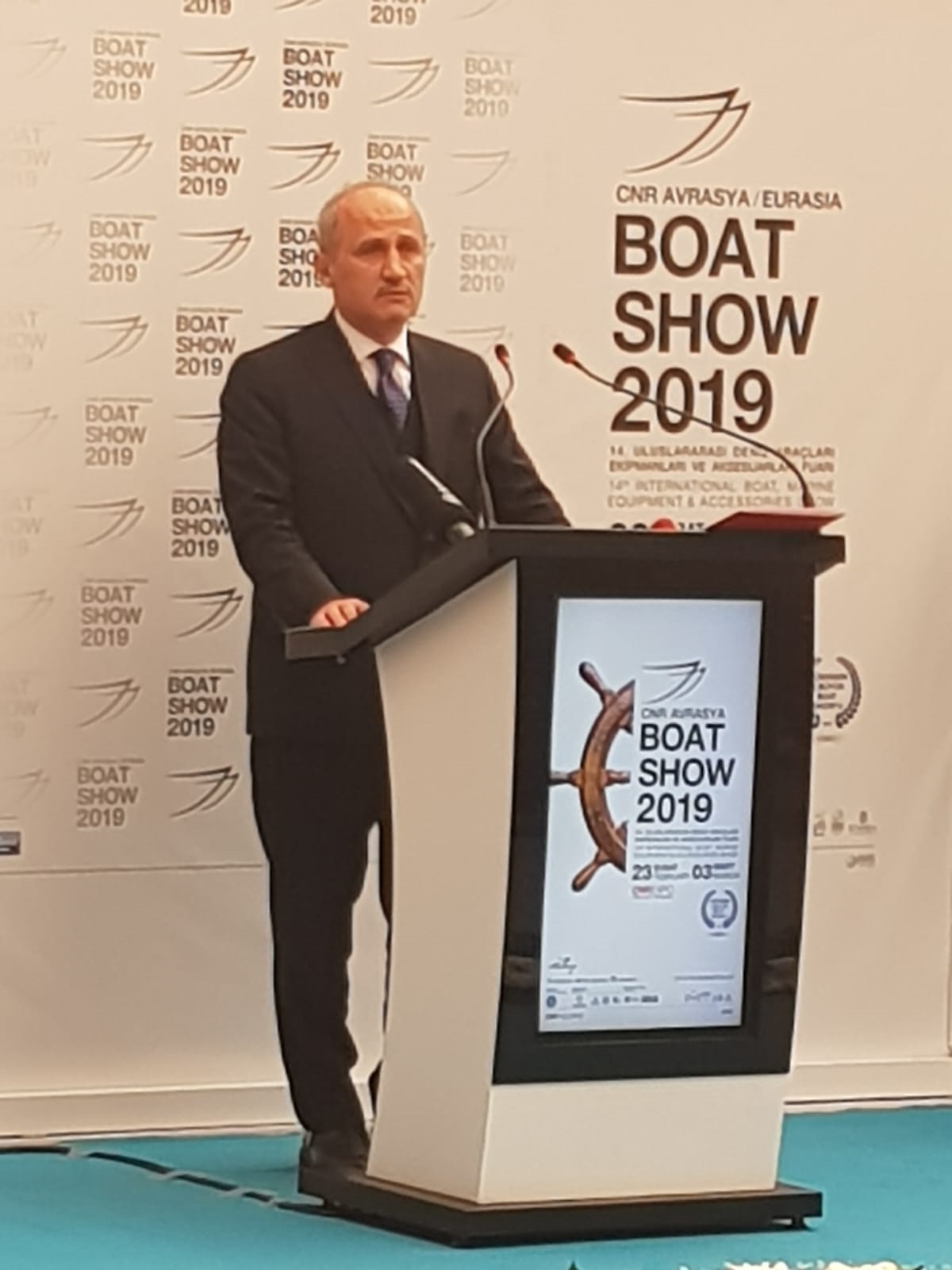 Turhan, Avrasya Boat Show 2019'un açılış töreninde yaptığı açıklamada, Türkiye'nin, sınırlarının yüzde 70'inden fazlasının denizlerle çevrili olduğunu, üç kıtanın geçiş yolunda bulunduğunu söyledi.
