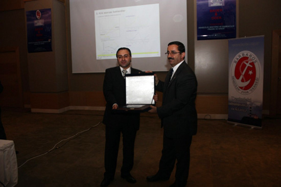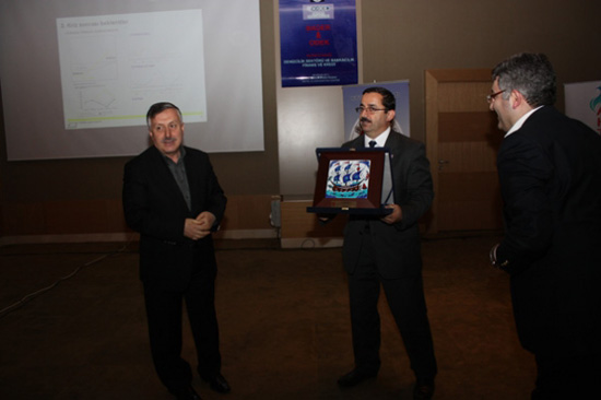 BADER başkanı Ali Seyhun'un konferansı sunan Erkan Turgut'a ve Denizcilik Müsteşarı Hasan Naiboğlu'na çinili bir tablo hediye etmesiyle konferans sona erdi.