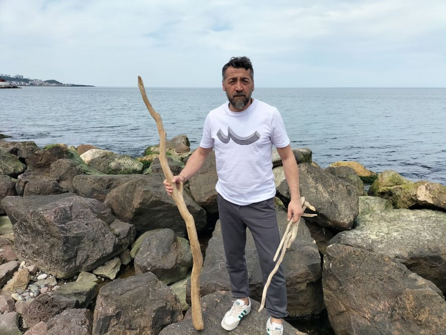 Ordu’da yaşayan Ali Kocatepe, denizden topladığı atık ağaçlar ile ahşap ürünler üretiyor.