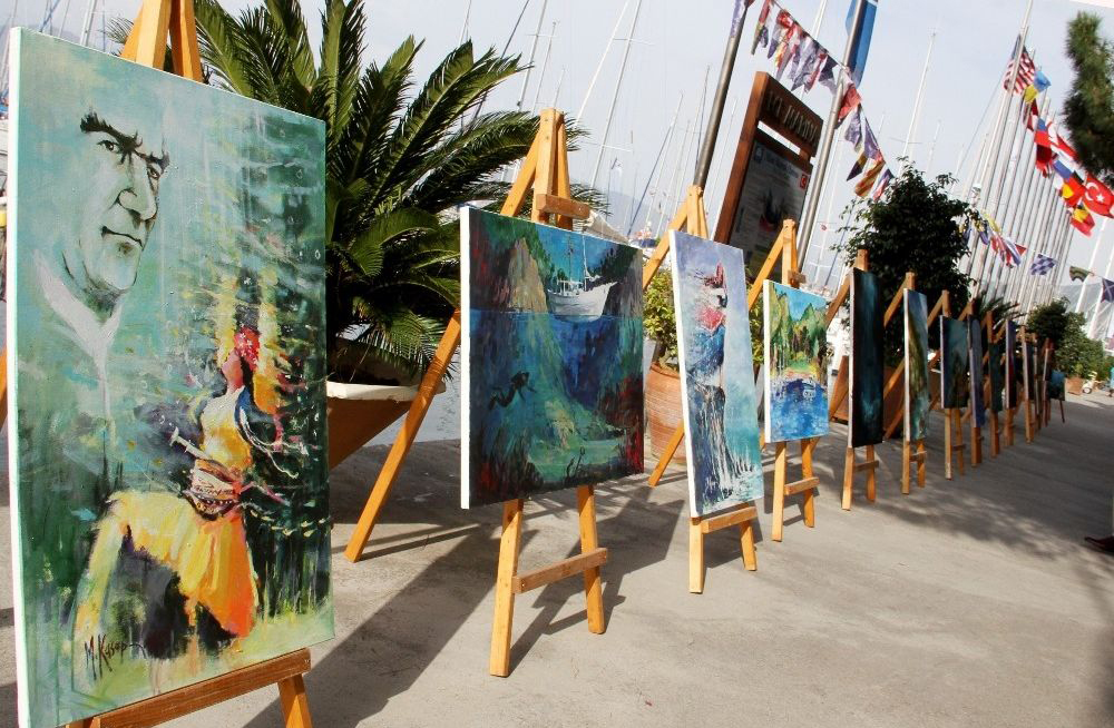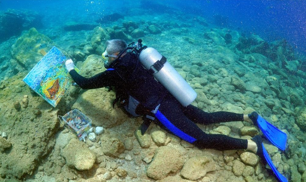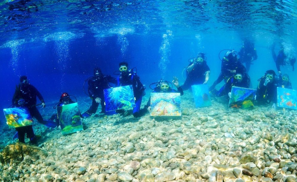 Dünyanın ikinci ve Türkiye’nin ilk sualtında resim yapan sanatçısı olan Emekli Koramiral Ressam Ekmel Totrakan önderliğinde dört gün süren çalıştayda sualtında yapılan yağlı boya resimler önce Fethiye’nin eşsiz güzellikteki turkuaz rengi denizinde sualtında sergilendi.
