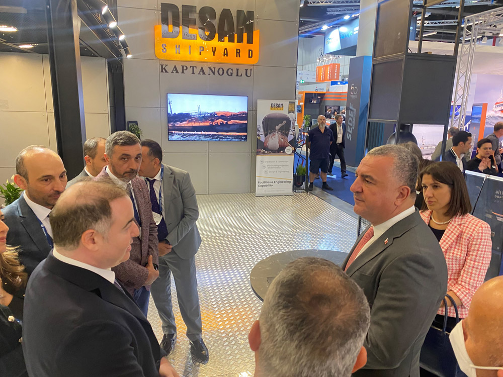 Denizcilikte bir asırdan fazla süredir hizmet veren Kaptanoğlu Grubu’na ait Desan Tersanesi, Almanya’nın Hamburg şehrinde düzenlenen Uluslararası Denizcilik Fuarı SMM Hamburg’da bu yıl da yerini aldı. Türkiye’nin Almanya Büyükelçisi Ahmet Başar Şen ve Hamburg Başkonsolosu Emine Derya Kara da Desan standını ziyaret ederek, yeni projelerle ilgili bilgi aldı.