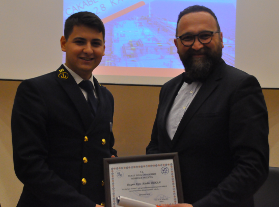 Kariyer günlerinin üçüncü gününün ilk oturumu Genel Denizcilik’ ten Personel Müdürü Kpt. Kadir Özkan’ın katılımı ile başladı. Kpt. Özkan Genel Denizcilik hakkında kısa bir tanıtım yaptıktan sonra şirketlerinin önceliğinin çevreye zarar vermeme ve maksimum emniyet olduğunu belirtti. Son dönemlerde denizde kazaların arttığını, bunun can, mal ve çevre emniyetini büyük ölçüde etkilediğini, bunların önüne geçmek için ise çok daha fazla dikkat edilmesi gerektiğinin altını çizdi. Günün ikinci oturumuna Angora Shipping kurucusu Kpt. Hakan Çendik konuk oldu. Konferansı interaktif bir şekilde yürüten Kpt. Çendik, denizcilik mesleğinde teorik ve pratik bilginin bir arada yürütülmesi ve öğrencilerin kendilerine sürekli yeni hedefler belirleyip hiç durmadan çalışmaları gerektiğinden bahsetti. Gelecekte başarılı zabitler olabilmek için öğrencilerin hayallerini hep canlı tutmalarını, kendilerine rol model seçmelerini isteyerek konuşmasını sonlandırdı.