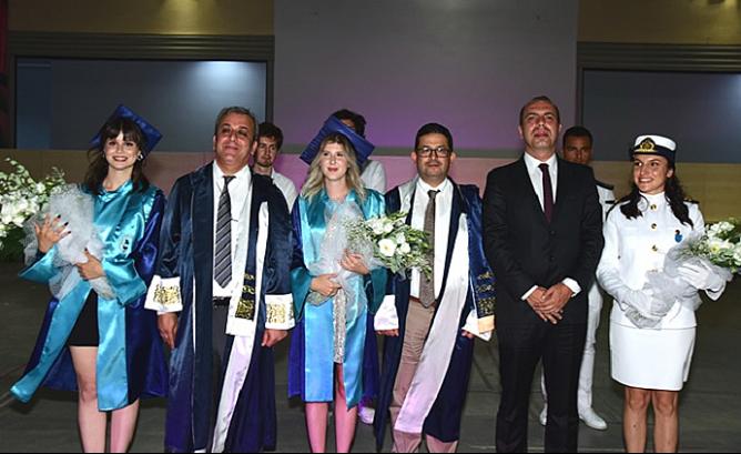 Konuşmaların ardından 2018-2019 Eğitim-Öğretim Yılı Denizcilik Fakültesi Birincisi Özge Tonbul, İkincisi Aslıhan Kaylan ve Üçüncüsü Esra Çelik’e belge ve armağanları takdim edildi. Fakülte’de ilk 3’e giren öğrenciler ayrı ayrı kendi bölümlerini de birincilikle bitirmiş oldular. Her üç öğrencinin de kadın olması mezuniyet törenine damgasını vurdu. Denizcilik Fakültesi’nin ilk üç öğrencisinin kadın öğrenciler arasından çıkması Uluslararası Denizcilik Örgütü’nün 2019 Dünya Denizcilik Günü temasını “Denizcilik Topluluğundan Kadınları Güçlendirmek” ilan etmesi ile güzel bir uyum sergiledi.
