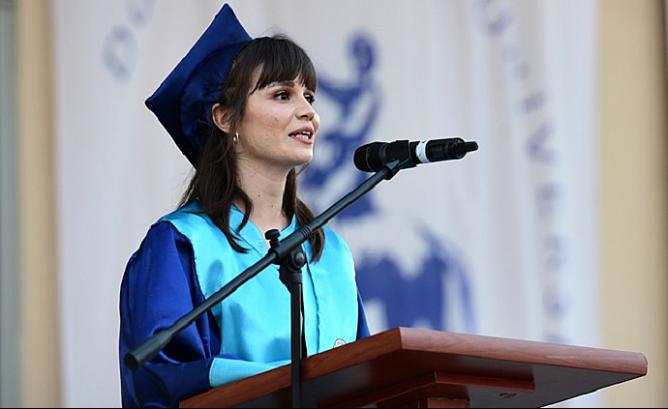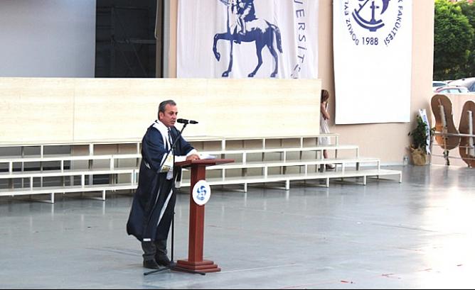 Prof. Dr. Deveci aynı zamanda Mezuniyet Töreninin onur konuğu ve sponsoru, Denizcilik Fakültesi’nin 1994 yılı Mezunu, BUSSERK Liman İşletmeleri sahibi ve Genel Müdürü Emrah Gezgin’e katkılarından dolayı şükranlarını sundu. Konuşmasının son bölümünü, ailelere ve yeni mezunlara ayıran Prof. Dr. Deveci, aileleri kutlayarak öğrencilere seslenirken, eğitimleri için katlanılan özverilerin farkında olarak, mesleki görev ve sorumluluk duygusuyla davranarak, kendilerine, ailelerine, çevrenlerine, ülkelerine ve denizlere olan kutsal borçlarını, görevlerini en iyi şekilde yaparak ödeyebileceklerini ifade etti ve her nerede ve hangi mevkide olurlarsa olsunlar, Atatürk ilke ve devrimleri ile Cumhuriyet değerlerine sahip çıkarak, rotalarının daima Mustafa Kemal Atatürk’ün yolu olması gerektiğini ifade ederek konuşmasını sonlandırdı.