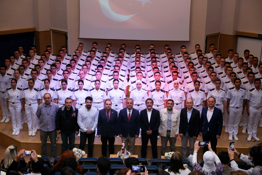 DEÜ Denizcilik Fakültesi tarafından düzenlenen, Fakülte öğrencilerinin aile ve yakınlarının yoğun katılım gösterdiği törene, öğretim elemanlarının yanı sıra bölgedeki denizcilik kurum ve kuruluşları ile sivil toplum örgütlerinin yönetici ve temsilcileri de katıldı.