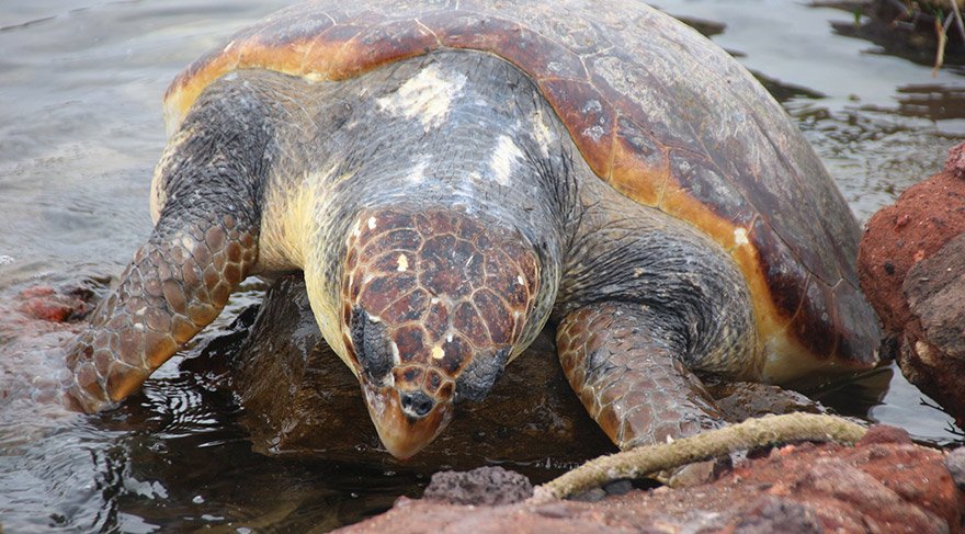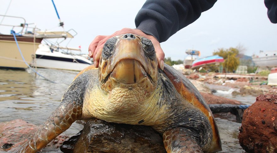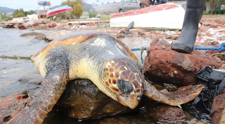 Ahmet Aşkın isimli başka bir vatandaş ise, kaplumbağanın balıkçılar tarafından atılan ağlara takıldığını söyleyerek, "Çünkü her tarafa rastgele ağ atılıyor. Hayvan kurtulamadı, çatladı. En sonunda karaya vurdu. Biz arada sırada ölmüş kaplumbağaları görüyoruz. Bence hayvan acıktı, ağdaki balıklara saldırınca ağlardan kurtulamadı" şeklinde konuştu.