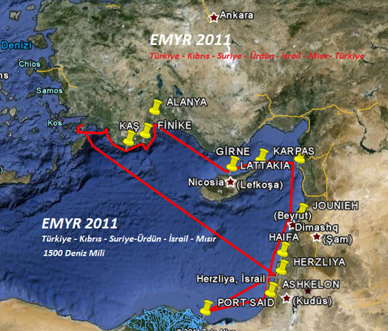 Girne'de 4 gün kaldıktan sonra 24 Mayıs'ta "Karpaz Gate Marina"ya gidecek yatlar burada da 1 gün geceledikten sonra 26 Mayıs'ta Lübnan'ın Jaunieh Limanı'na hareket edecek.