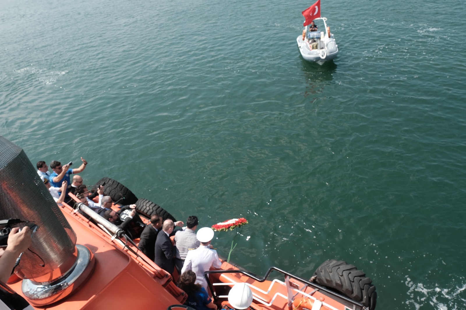 İzmit Kültür Tepesindeki resmi törenin ardından, 1 Mart Vapur İskelesinden hareketle kalkan römorkörle, Kocaeli Vali Yardımcısı İsmail Gültekin’in de iştirakleriyle, Ulu Önder Mustafa Kemal Atatürk’ü ve deniz şehitlerini anma adına denize çelenk bırakma töreni düzenlendi.
