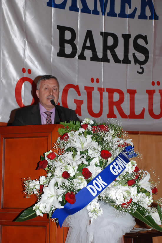 Dok Gemi İş H.Necip Nalbantoğlu’nun tekrar yönetime adaylığını açıkladığı genel kurula, Denizcilik Müsteşarı Hasan Naiboğlu, Tersaneler Genel Müdürü Yaşar Duran Aytaç gibi isimlerin yanında birçok tersane sahibinin de katılması dikkat çekti. Başbakan Recep Tayyip Erdoğan da genel kurula bir mesaj ileterek, işlerinin yoğunluğu nedeniyle katılamadığını söyleyerek, başarılar diledi.