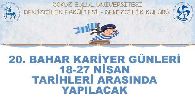 Dokuz Eylül Üniversitesi Denizcilik Fakültesi Denizcilik Kulübü 2016 Bahar Kariyer Günleri 18-27 nisan 2016 tarihleri arasında gerçekleştirecek.
