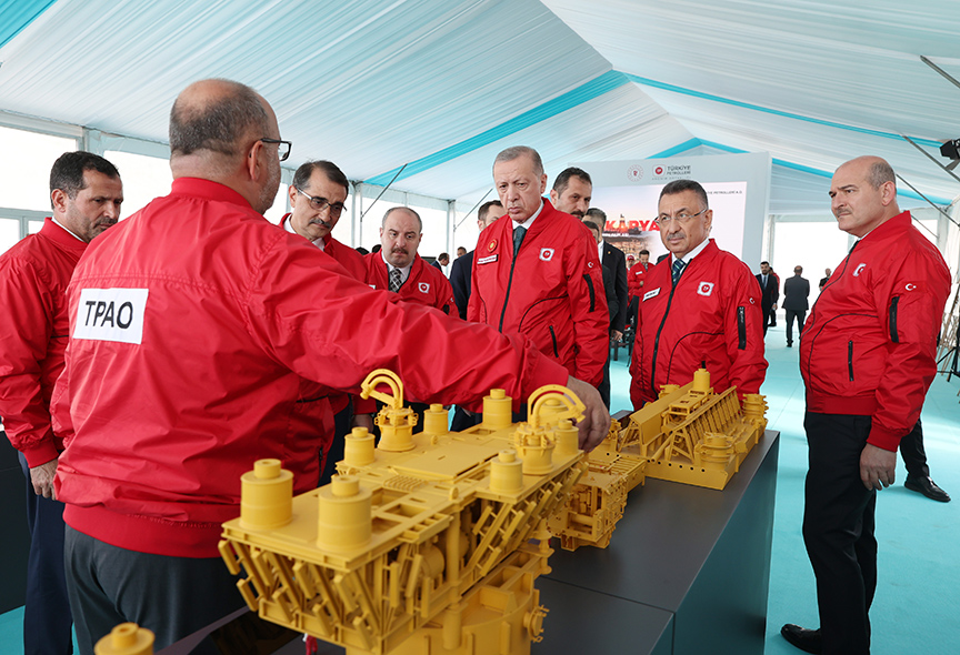 Törenin sonunda ilk boru indirme ve kaynak gerçekleştirildi. Sondajda kullanılan ilk matkap da Erdoğan'a hediye edildi.