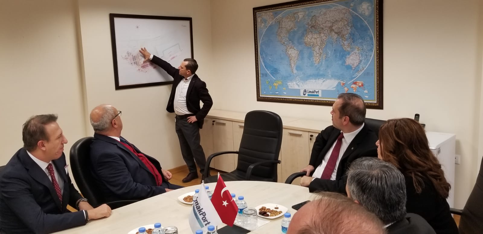 İMEAK Deniz Ticaret Odası Yönetim Kurulu Başkanı Kıran ve beraberindeki heyet İskenderun Şube ziyareti kapsamında gittiği Hatay’da son olarak Limak Port’u ziyaret etti. Limak Port Genel Müdürü Gündüz Arısoy, DTO Yönetim Kurulu Başkanı Tamer Kıran ve beraberindeki çalışma arkadaşlarına limanla ilgili bilgiler verdi.