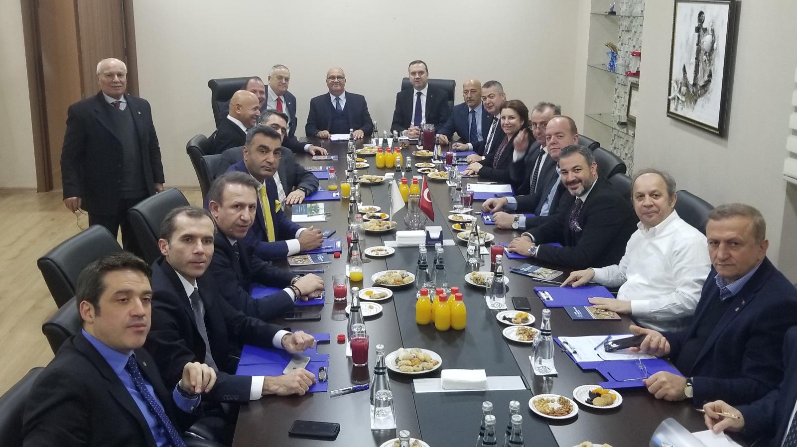Deniz Ticaret Odası Yönetim Kurulu Başkanı Tamer Kıran öncülüğünde İMEAK DTO İskenderun Şubesi ziyareti kapsamında bu kez de Atakaş Şirketler Grubu Yönetim Kurulu Başkanı Recep Atakaş ile bir araya geldi. Görüşmede DTO yöneticileri Atakaş Şirketler Grubu Yönetim Kurulu Başkanı Recep Atakaş ile görüş alışverişinde bulundular.