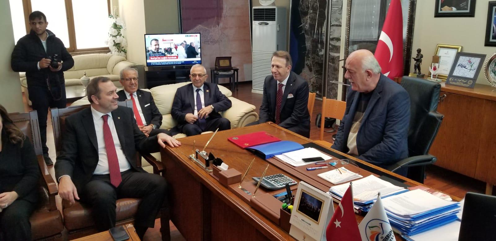 Deniz Ticaret Odası Yönetim Kurulu Başkanı Tamer Kıran ve beraberindeki heyet İskenderun Belediye Başkanı Seyfi Dingil, tarafından makamında ağırlanırken, daha sonra İskenderun Ticaret ve Sanayi Odası Başkanı Levent Hakkı Yılmaz’a bir ziyaret gerçekleştirildi.