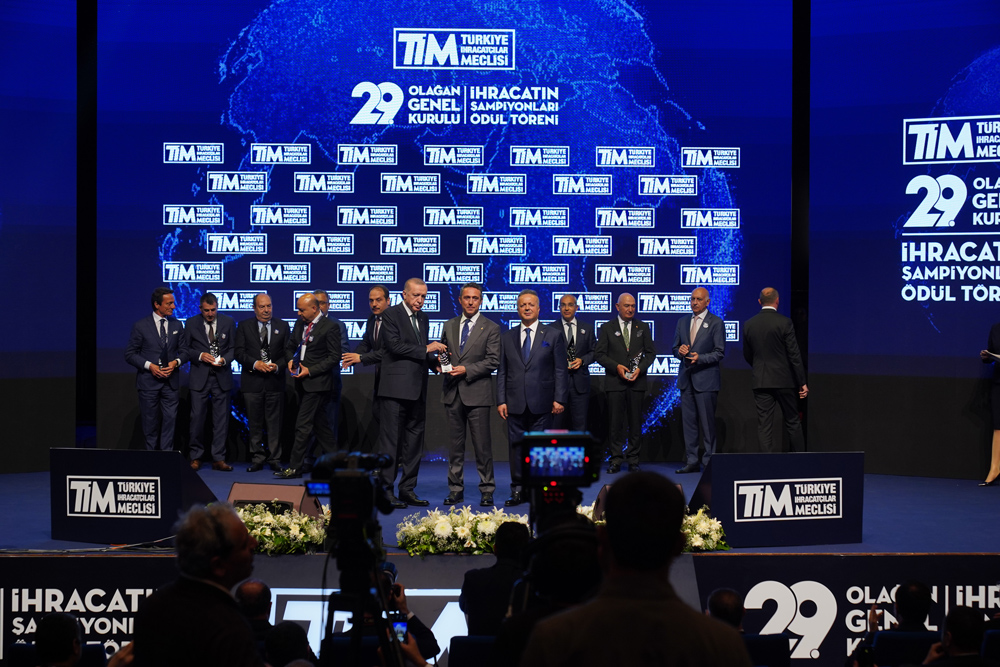 “2021 İhracatın Şampiyonları Ödül Töreni” Cumhurbaşkanı Recep Tayyip Edoğan, Ticaret Bakanı Dr. Mehmet Muş, Hazine ve Maliye Bakanı Nurettin Nebati ve Sanayi ve Teknoloji Bakanı Mustafa Varank’ın katılımıyla İstanbul Haliç Kongre Merkezi’nde düzenlendi.
