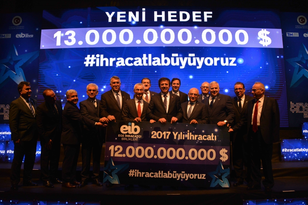 1548Ege İhracatçı Birlikleri, Türkiye İhracatına 2017 yılında 5.5 milyar dolarlık katkı sağlayan 56 üyesini ödüllendirdi. "İhracatın Yıldızları Ödül Töreni"nde ihracatçılara ödüllerini Ekonomi Bakanı Zeybekci, TİM Başkanı Büyükekşi ve Ünlütürk verdi.