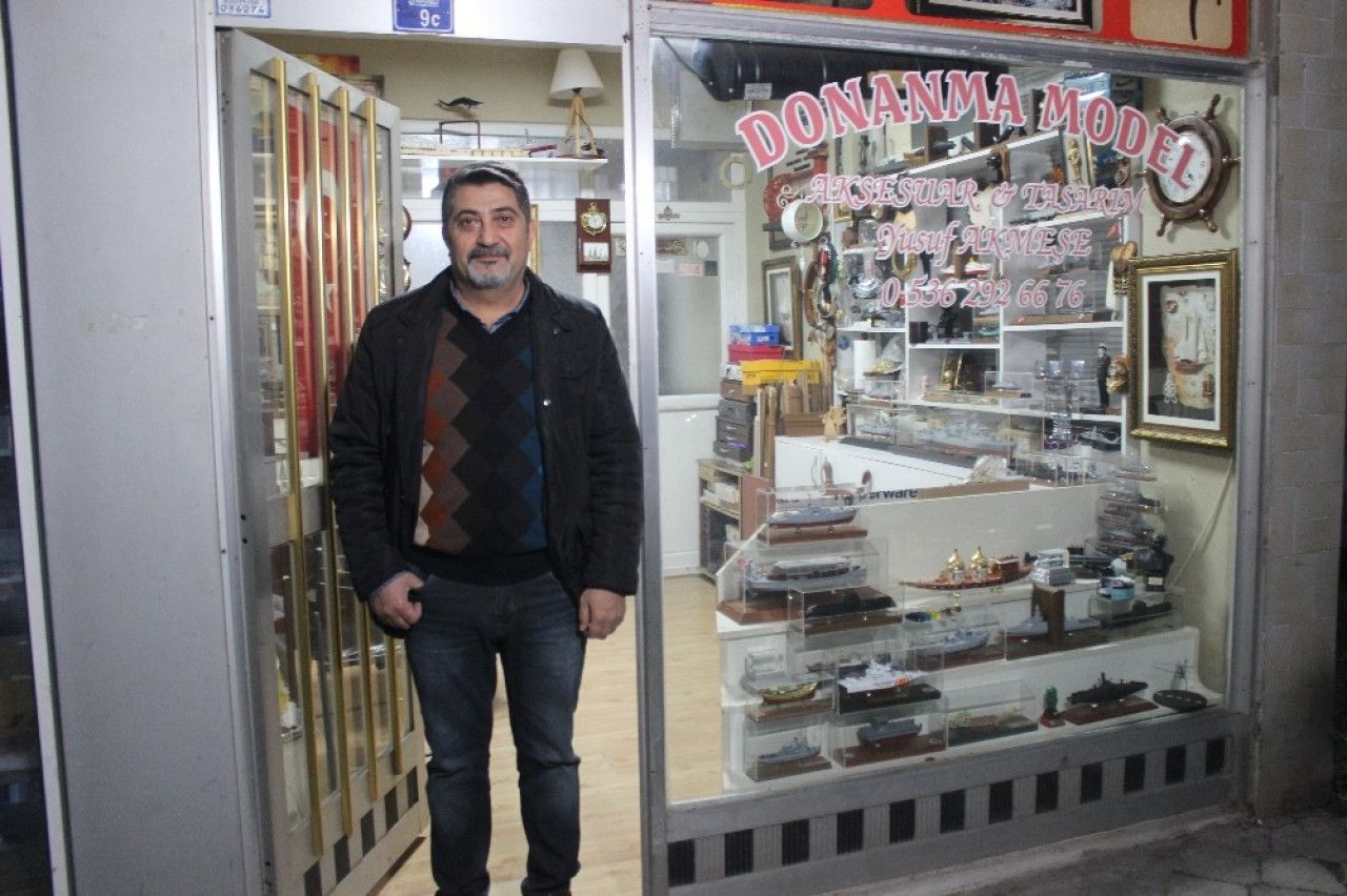 20 yıldır hobi olarak uğraştığı model gemiciliği mesleğe dönüştürdüğünü söyleyen emekli Deniz Astsubay Yusuf Akmeşe, "1986 mezunu deniz astsubayıyım. Emekliyiz şu anda 2010 yılında emekli oldum. Görevdeyken bizim kültür merkezi vardı donanma içerisinde orada resim kursuyla başladığım bu beceri hayatını gemi modelciliğine çevirerek o yıldan itibaren 2000'den itibaren 20 yıldır bunu hobimi böyle bir işe çevirip devam etmeye çalıştım. Daha sonraki dönemde emekli olduktan sonraki dönemde bir firma kurduk. Buradaki işim gemi modelciliği özellikle başta. Özellikle deniz kuvvetleri gemilerinin yapımı konusunda ve hediyelik olarak değerlendirilmesi konusunda bir çalışma içerisindeyim. Onun haricinde 2010 yılında emekli olduktan sonra, önce derince eğitim merkezi astsubay okulunda gemi modelliği kursu verdim ve daha sonrada Kocaeli Büyükşehir Belediyesi KOMEK meslek edindirme kursları kapsamında 6 sezon boyunca yaklaşık 500 tane öğrenciye faydalı olabilecek şekilde eğitimler verdim. Bunun haricinde çeşitli Kabotaj Bayramlarında olsun, 23 Nisanlarda değişik sergilere katıldık. Tüm arkadaşlarımızla beraber Donanma Model adına hem sosyal bir faaliyet yapmış oluyoruz. Deniz kuvvetlerini de slogan olarak tanıtmaya çalışıyorum" dedi.
