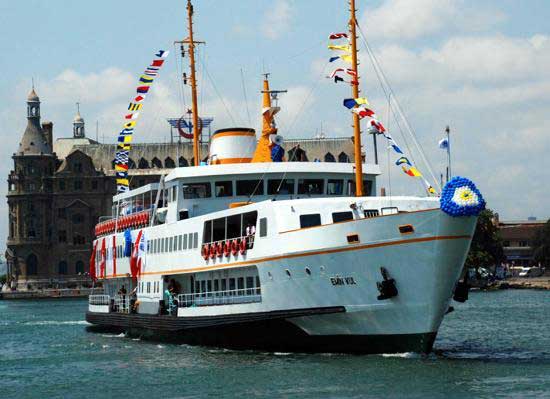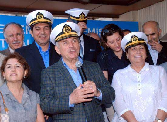 Konuşmaların ardından Topbaş ve beraberindekiler, iskeleye yanaşan gemiye binerek gemiyi gezdi.
