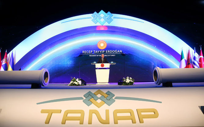 Türkiye ve Azerbaycan tarafından yapımı üç yıldır süren ve Azeri doğalgazını Türkiye üzerinden Avrupa'ya taşıyacak Trans Anadolu Doğalgaz Boru Hattı (TANAP) bugün açıldı. TANAP'ın açılış törenine Cumhurbaşkanı Recep Tayyip Erdoğan, KKTC Cumhurbaşkanı Mustafa Akıncı, Azerbaycan Cumhurbaşkanı İlham Aliyev, Sırbistan Cumhurbaşkanı Vucic ve Ukrayna Cumhurbaşkanı Petro Poroşenko da katılım sağladı. Açılışta konuşan Erdoğan, "Bugün bölgemiz ve ülkelerimiz için tarihi bir adım atıyoruz" dedi.