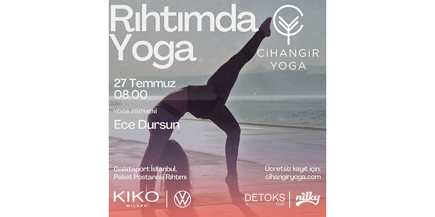 Kiko Milano ve Doğuş Otomotiv Plus | Volkswagen sponsorluğunda Cihangir Yoga ile uzun soluklu bir iş birliğine adım atan Galataport İstanbul, “Rıhtımda Yoga” adlı kolektif aktivite serisinin üçüncüsünü 27 Temmuz Cumartesi 08:00-09:00 saatleri arasında Paket Postanesi rıhtımında düzenleyecek. İlk iki buluşmada yüzlerce yoga tutkununu bir araya getiren Galataport İstanbul, bu defa Tarihi Yarımada’nın daha da yakından görülebildiği Paket Postanesi rıhtımında misafirlerine unutulmaz anlar yaşatacak. Detoks by Tost sağlıklı tatları, Nilky ise vegan içecekleriyle etkinliğe renk katacak. Ücretsiz ve herkese açık olarak düzenlenecek etkinlikte katılımcılar, Tarihi Yarımada manzarasının daha da yakından görülebildiği Paket Postanesi rıhtımında Boğaz’a nazır bütünsel bir arınma seansının keyfini çıkaracak.