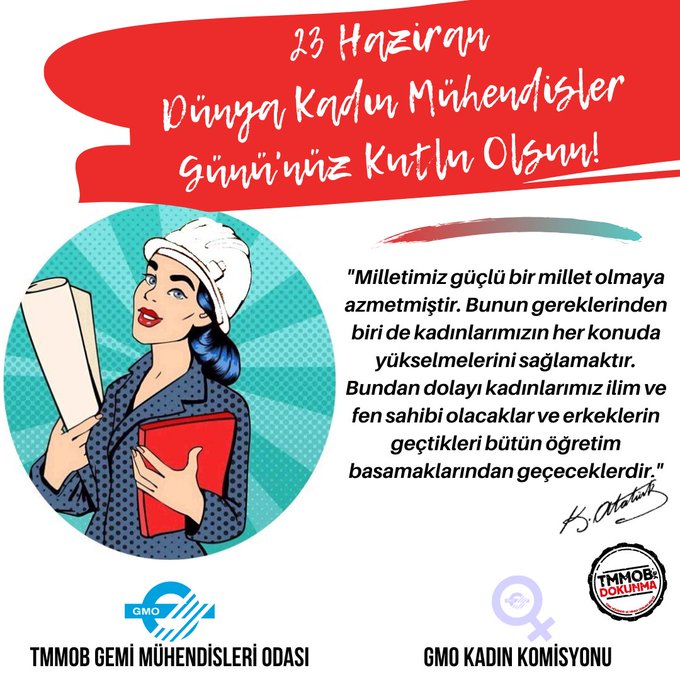 TMMOB GMO, Dünya Kadın Mühendisler Günü'nü, Atatürk'ün sözünün de yer aldığı bir görselle kutladı.