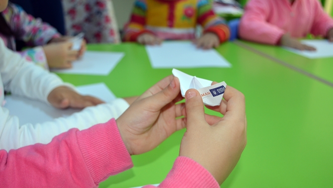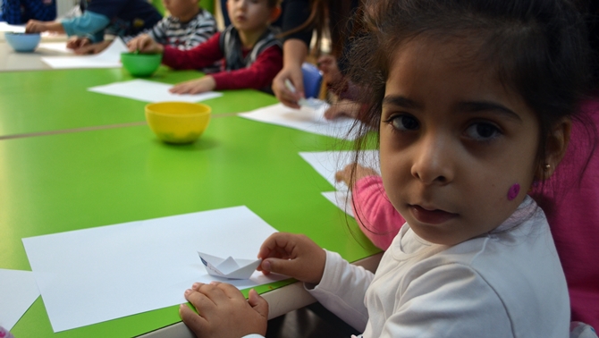 Anasınıfı öğrencileri ile birlikte kâğıttan yapmış oldukları tekneleri öğrenciler ile birlikte boyayıp, sınıf içinde suda yüzdürdüler. Anasınıfı öğrencileri de hayallerinde ki gemi resimlerini çizip, deniz ve liman işletmeciliği öğrencileri ile paylaştılar.
