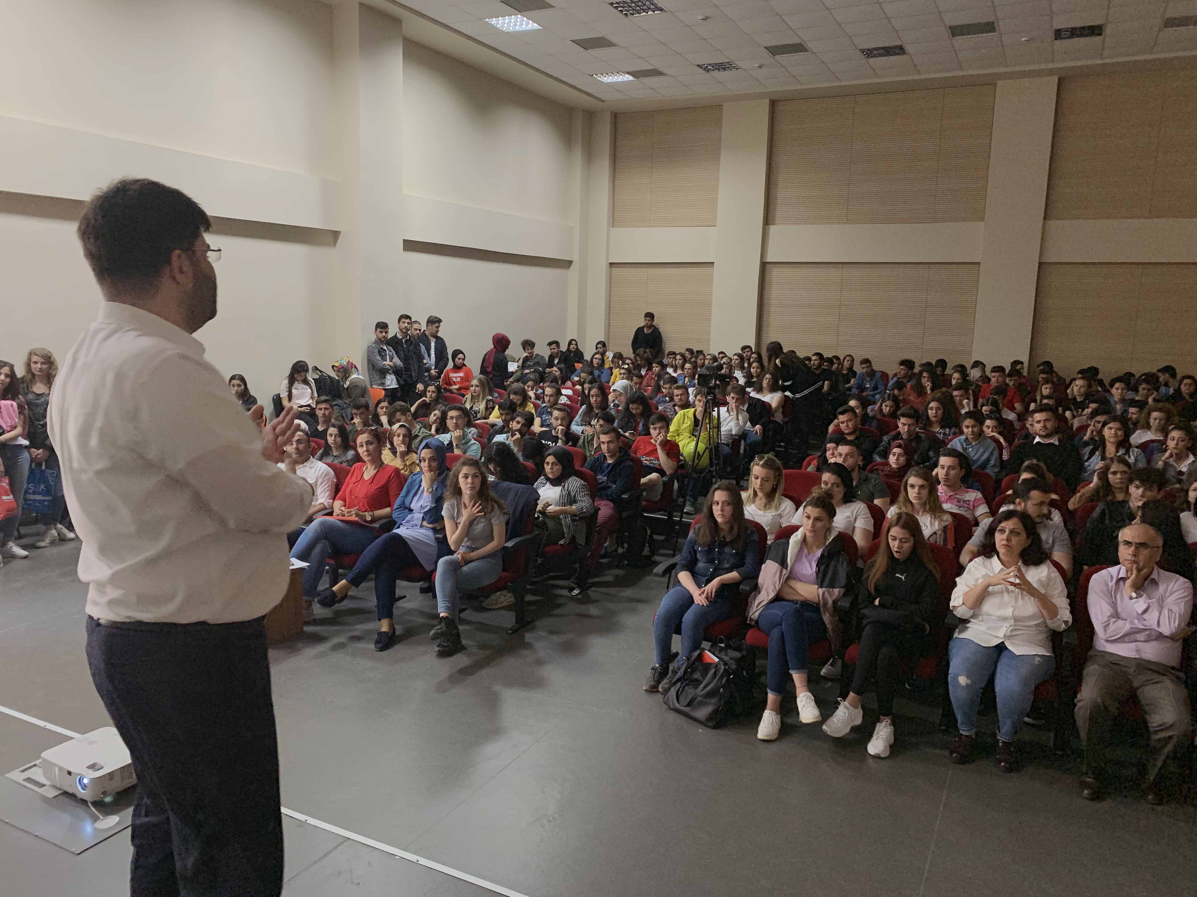 İş hayatından önce son evre olan üniversite hayatının verimli geçirilmesi gerektiğini kaydeden GESTAŞ Genel Müdürü, kendi üniversite yıllarından örnekler vererek; hedeflerin iyi belirlenmesi, birçok iş yerine tek işte uzmanlaşılması, mutlaka yabancı dil öğrenilmesi, denemekten ve risk alınmaktan kaçınılmaması, özgüvenin sağlam olması gibi kriterlerin önemine değindi. Uslu, konuşmasının sonunda üniversiteli gençlere gelecekle alakalı kendilerine yatırım yapmalarını, ne yapmak istediklerine net olarak karar vermeleri, üniversite hayatında bu hedefle ilintili bir işte çalışmaları tavsiyelerinde bulundu.