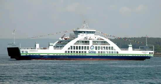 Çanakkale Boğazı ve adalara gemi ulaşımını sağlayan GESTAŞ Deniz Ulaşım A.Ş., Güney Marmara'da Avşa-Erdek-Marmara adaları hattında çalışacak "Çanakkale" isimli feribotunu törenle tanıttı.