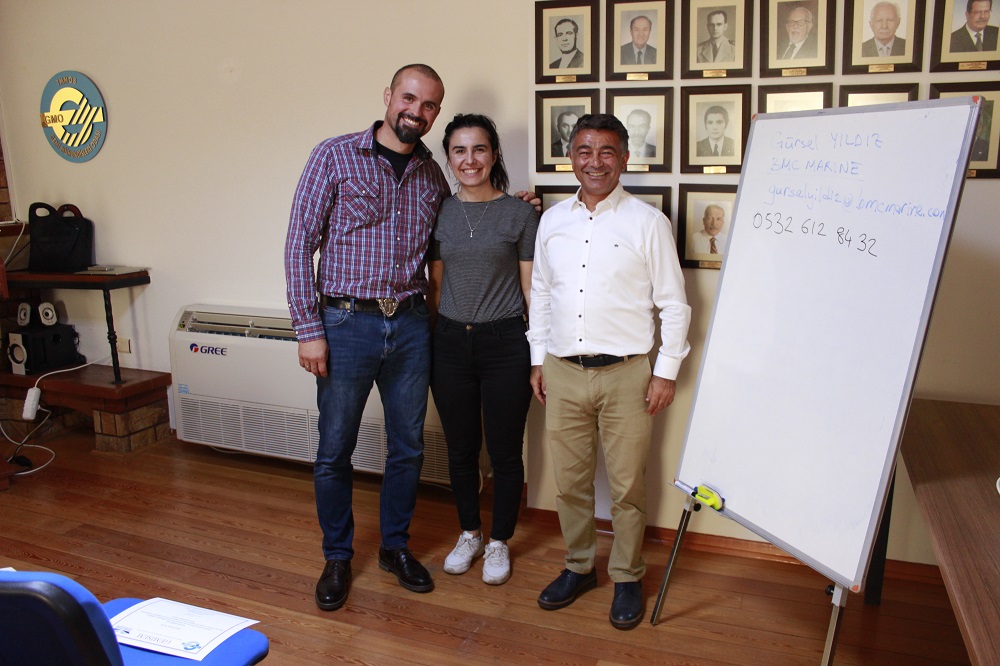 Deformasyon giderme ve yeni teknoloji alevsiz tavlama sistemi BMC Marine Mühendislik firma yetkilisi ve GMO Üyesi Gürsel Yıldız ile EFD Induction firma yetkilisi Mr. Jan L Trolleud tarafından aktarıldı.