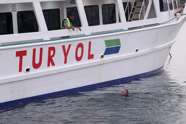 Türkiye ve AB arasındaki mutabakat kapsamında 45 Pakistan uyruklu, ülkelerine iade edilmek üzere Midilli Adası'ndan yola çıktı. Bu sırada, göçmenleri taşıyan feribot yola çıkmak üzereyken üç aktivist denize atlayarak, feribotun önüne kadar yüzdü.