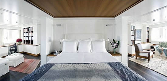 Google kurucularından Larry Page, yıldızların altında jakuzi’de stres atabilecek. Bu yatak odası 3 taraflı görüş açısına sahip. Eğer jakuzi doluysa, banyonun dibinde aynı işlevi görecek küvet bulunuyor. Page yeni oyuncağına sahip olmasına karşın, diğer yüksek teknolojili ultra zenginler Paul Allen ve Larry Ellison’dan geri kalmış durumda. Allen, “Octopus” isimli 415 ft uzunluktaki yatın sahibi. Ellison ise 454 ft uzunluğundaki yata sahip ve ismi de “Rising Sun”. İki yatın fiyatı da yaklaşık 200 milyon dolar.